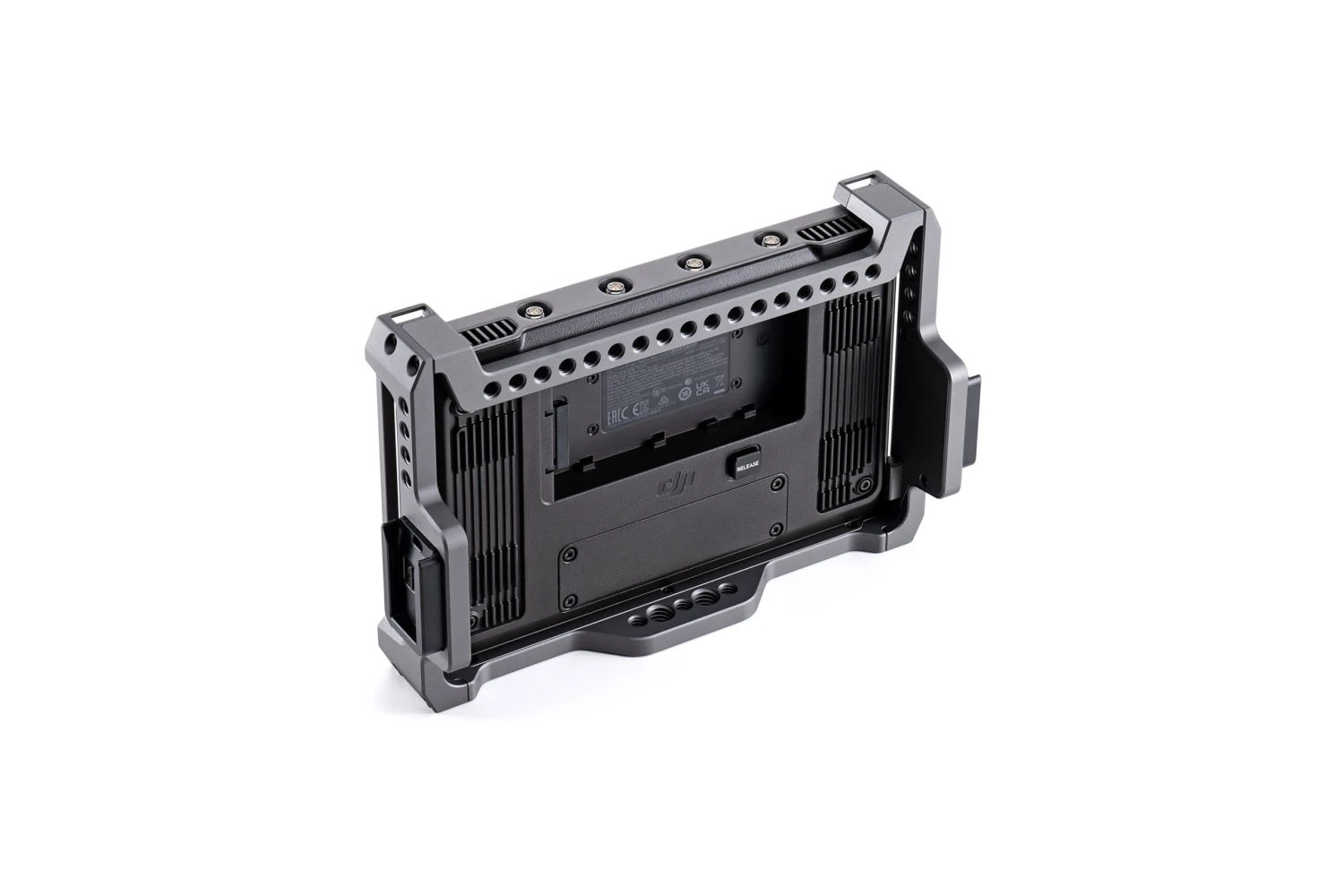 A monitoring, recording, and playback device with a broad colour gamut display and an image transmission receiver, the DJI High-Bright Remote Monitor. HDMI and SDI signals can be output when used in conjunction with the DJI Remote Monitor Expansion Plate.